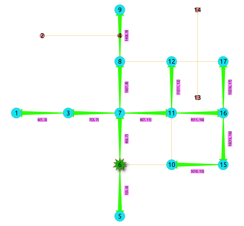 From root vertex \(6\) on a directed graph with edges in ascending order of