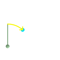 Green: the start Point(75,100) with its vertical. Yellow: degB_A as the path to travel (azimuth).