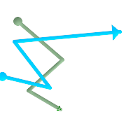 Line 1 (green), Line 2 (blue) ball is start point, triangle are end points. Query below.