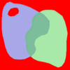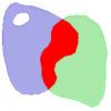 Visually, for two overlapping polygonal geometries, this looks like:
