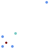 Comparison of the geometric median (red) and centroid (turquoise) of a MultiPoint.