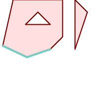 A multipolygon snapped to linestring to tolerance: 1.01 of distance. The new multipolygon is shown with reference linestring