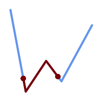 A LineString seen with 1/3 midrange overlaid (0.333, 0.666)