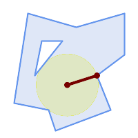 For polygonal inputs, the circle is inscribed within the boundary rings, using the internal rings as boundaries. For linear and point inputs, the circle is inscribed within the convex hull of the input, using the input lines and points as further boundaries.