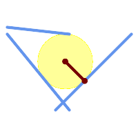 Maximum inscribed circle of a multi-linestring. Center, nearest point, and radius are returned.