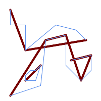 'MULTILINESTRING ((20 180, 20 150, 50 150, 50 100, 110 150, 150 140, 170 120), (20 10, 80 30, 90 120), (90 120, 130 130), (130 130, 130 70, 160 40, 180 60, 180 90, 140 80), (50 40, 70 40, 80 70, 70 60, 60 60, 50 50, 50 40))',